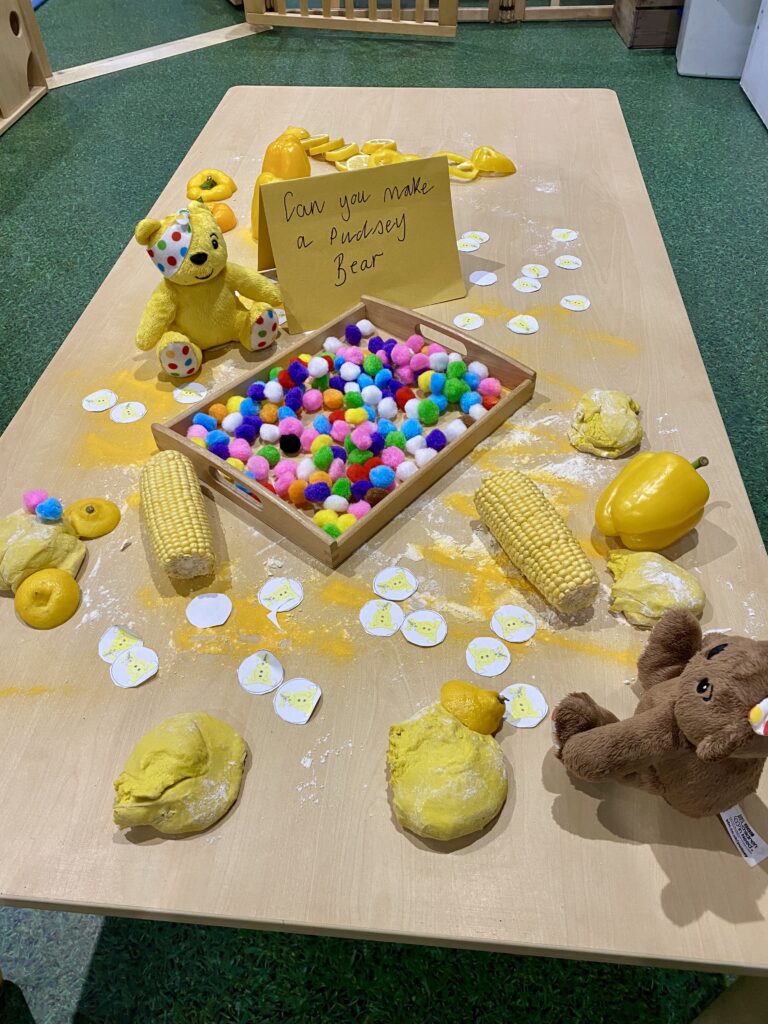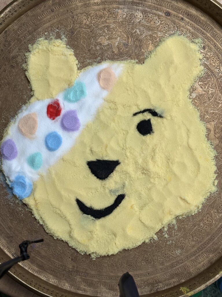 We have had lots of fun celebrating Children in Need today including a cake sale and sand art.