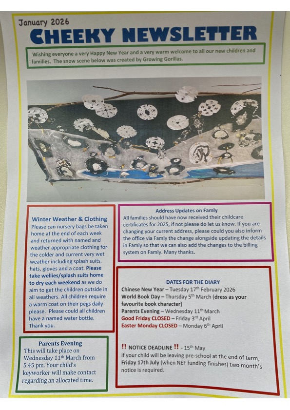 January Newsletter 2026 – Happy New Year and welcome to all our new families.